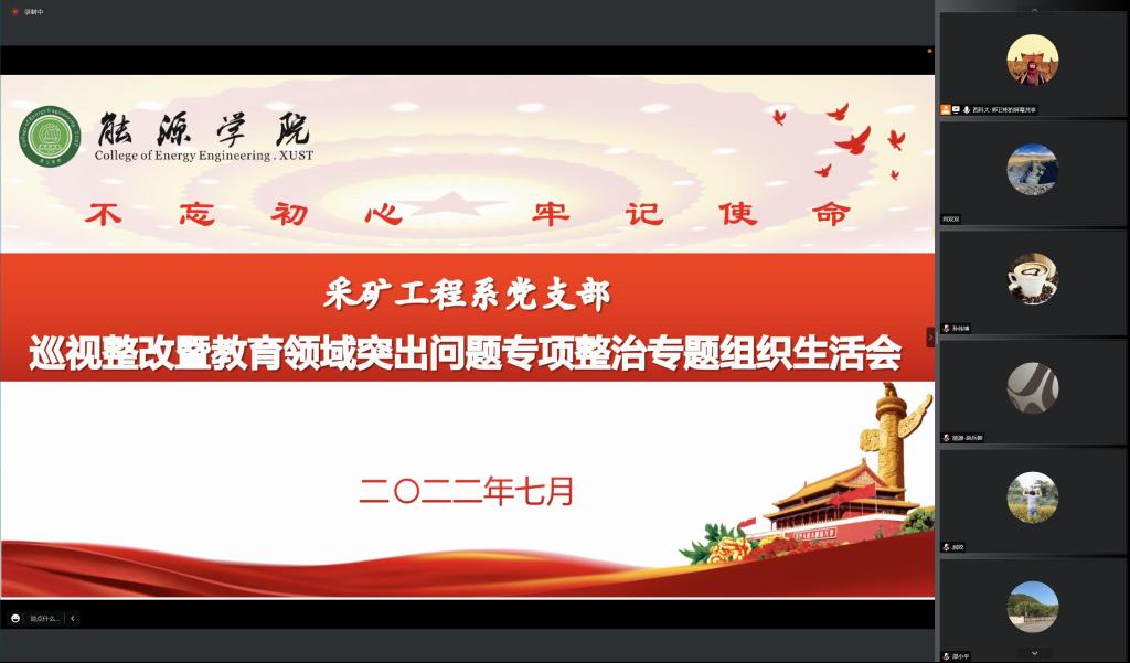 7月13日,根据学院党委安排要求,采矿工程系党支部召开巡视整改暨教育领域突出问题专项整治专题组织生活会,伍永平教授到会指导,会议由支部书记郭卫彬主持。