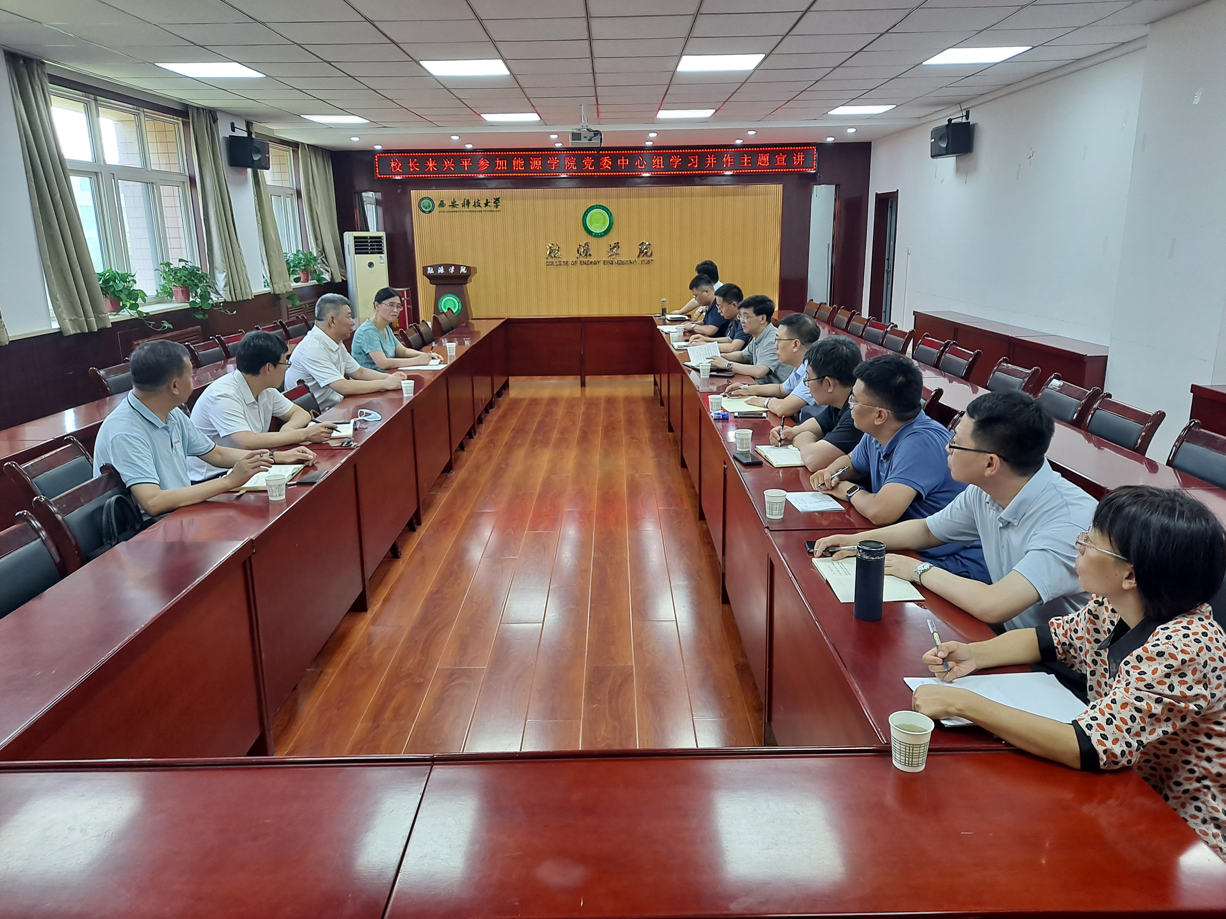 6月22日上午,我院党委中心组学习会在临潼校区骊山校园学院会议室召开,校长来兴平参加中心组学习并以“学习贯彻六中全会精神,推动能源学院高质量发展”为题进行了主题宣讲。学院党委中心组全体成员、学生党支部书记、辅导员等20余人参加会议。会议由学院党委负责人主持。