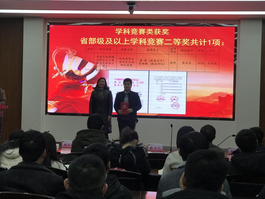 12月31日下午,能源学院在雁塔校区图书馆报告厅召开了2019年研究生学科竞赛表彰大会。能源学院党委书记陈吉兰、院长柴敬、副院长赵兵朝、解盘石、副书记李绥波、采矿系副主任王红伟、学院研究生培养办聂丽华、宋晓华,及学院全体博硕士研究生参加了会议。赵兵朝主持会议。