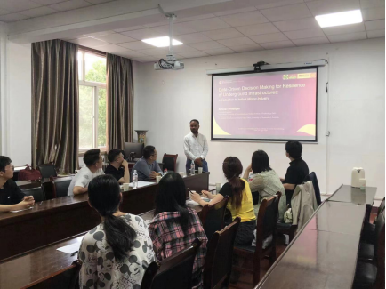 报告会上,Abhinav Dewangan作了题为《Data-Driven Decision Making for Resilience of Underground Infrastructures——The development of Mining Engineering in India》的学术报告,Abhinav博士讲解了人工智能模型在地下结构工程韧性分类识别中的应用,并介绍了采矿业在印度的发展现状与趋势。期间,Abhinav博士向学院师生赠送了昆士兰大学纪念品。会后,Abhinav博士与参会教师就人工智能在矿业工程中的应用展开了讨论,与博硕士研究生就出国留学等问题进行了交流。