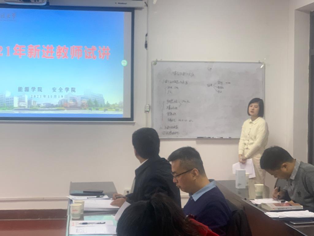 11月19日上午,能源学院、安全学院在雁塔校区能源学院310会议室举行2021年新进教师讲课活动, 共有十一名教师参加。安全学院教授张俭让,副院长成连华,能源学院余学义教授, 副院长邵小平担任本次评委,会议由余学义主持。