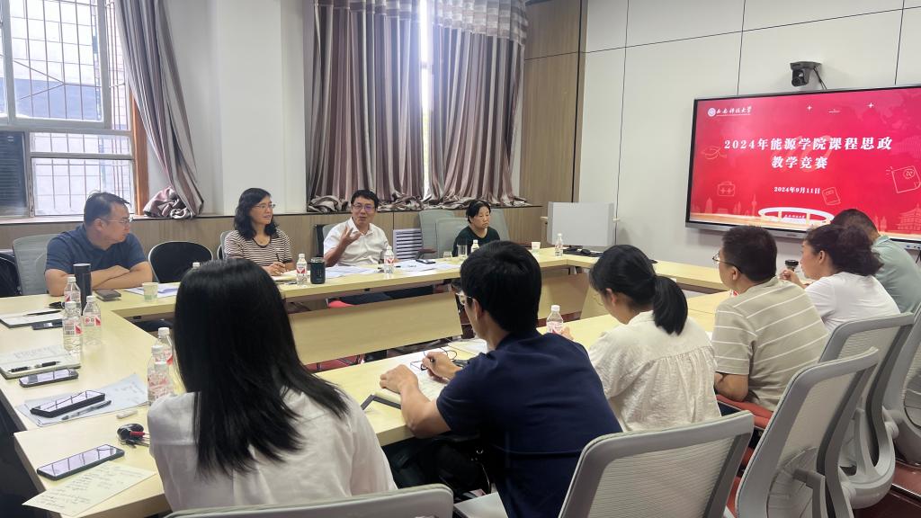 9月11日上午,能源学院在雁塔校区学院楼309会议室成功举办2024年课程思政教学竞赛。比赛邀请学院党委书记陈吉兰、院长赵兵朝、采矿工程系主任王红伟、建筑环境与能源应用系党支部书记陈柳等4名老师担任评委,王伟、周静、朱梦博、王晶钰、许涛、谢静哲、吕超、贾奇锋、王雪丽等9名教师代表参加了比赛。比赛由副院长丁自伟主持。