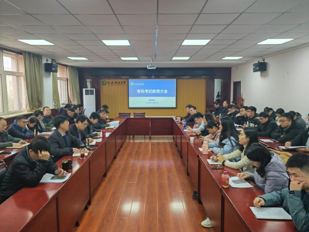 为进一步加强期末考试管理,规范考试工作程序,加强考风学风建设,能源学院于2024年12月11日下午在骊山校园14学院323会议室召开考风考纪教育大会。学院班子成员及全体教师参加了会议。会议由院长赵兵朝主持。