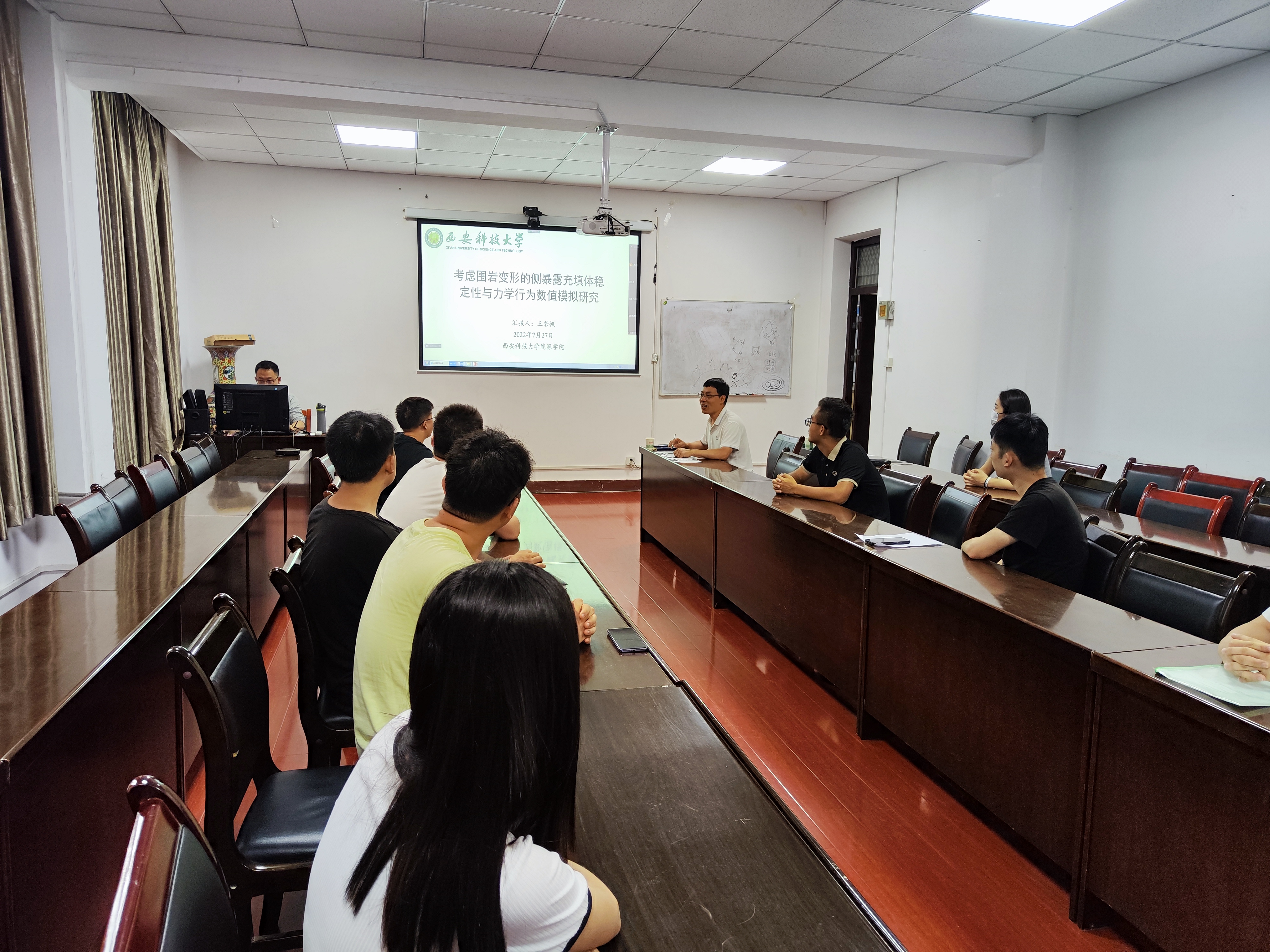 2022年07月27日上午9时,我院王若帆、姬松涛和吕超老师于采矿楼310会议室为能源学院全体师生分别做了学术报告。本次报告采用线上线下相结合的形式进行,能源学院部分教师及全体博硕士研究生参加,本次报告会由能源学院赵兵朝教授主持。