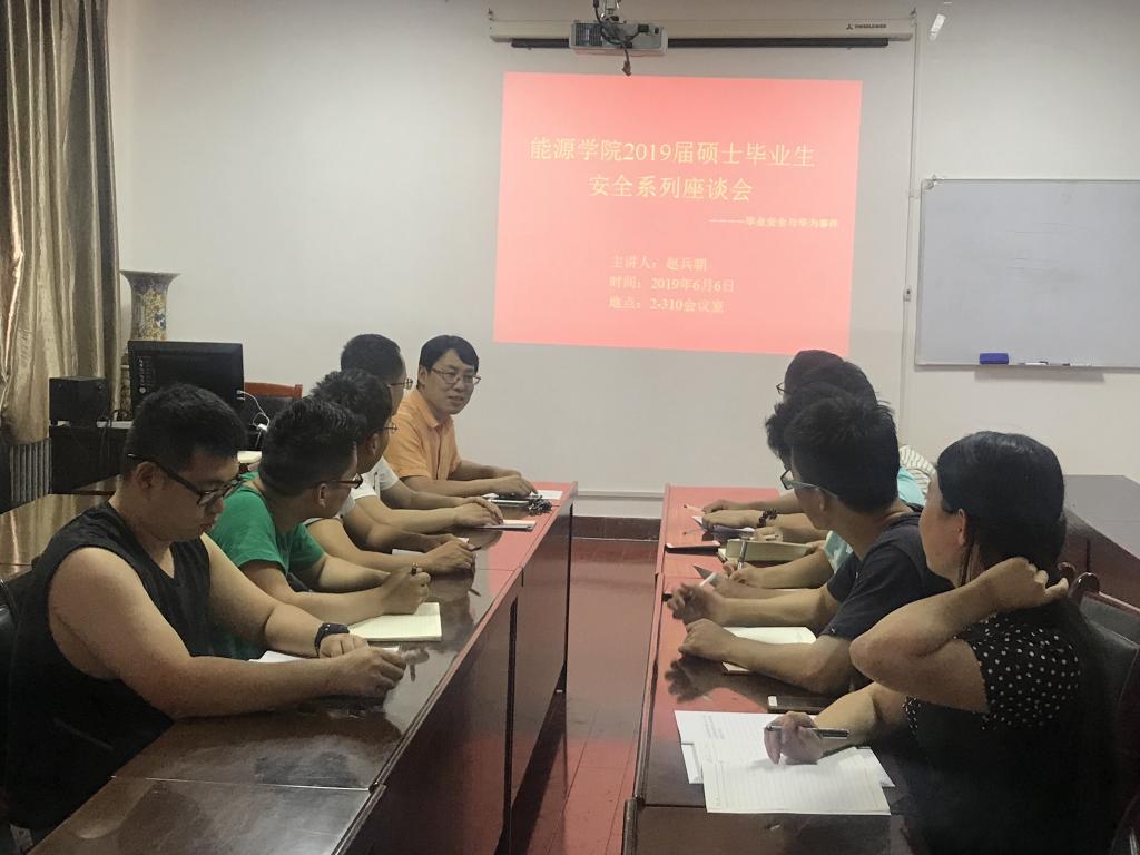 2019年6月6日下午3:30~4:30,能源学院赵兵朝教授与2016级硕士研究生党支部,就毕业生安全问题举行座谈交流活动。
