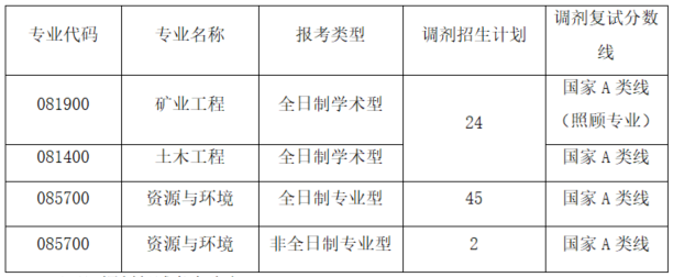 2. 考生初试单科、总分达到国家A类地区复试分数线,跨专业调剂至矿业工程学科(081900)须达到原报考学科国家A类地区复试分数线。