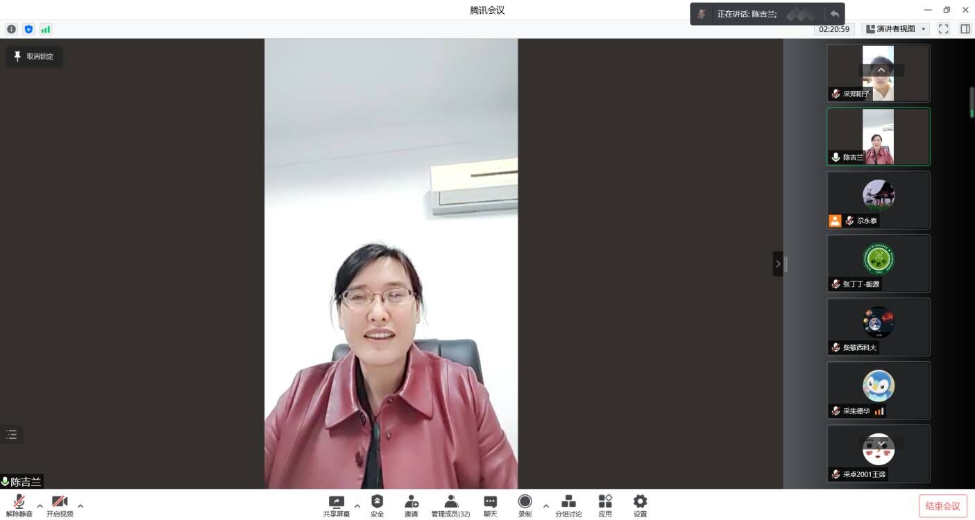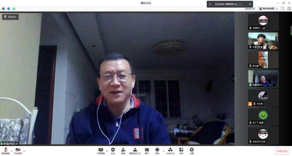 会上,每位同学都从自身现阶段学习、生活等情况出发,谈了谈疫情对个人的影响,并在专业前景、考研与就业的选择、如何做科研等方面提出了面临的困难和疑惑。班主任张丁丁分析了班级总体的学习成绩、活动参与、班级特色的情况,督促同学们要继续加强课程知识学习。党委副书记李绥波讲解了近期西安的疫情形势和学校的疫情防控政策,要求同学们注意个人防护,为校园内的疫情防控贡献自己的一份力量。院长柴敬结合自身发展经历,与同学们交流了如何做好自己和对采矿的课程如何学习等情况,并希望大家克服目前线上学习的困难。党委书记陈吉兰希望同学们要积极发挥个人的长处与特色,加强理论知识学习,提前做好个人的规划,毕业时取得一个理想的结果。她要求同学们在疫情期间有所担当,充分发扬当代大学生独特的时代精神。