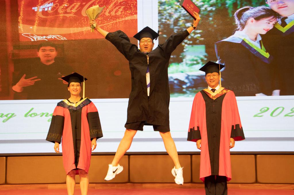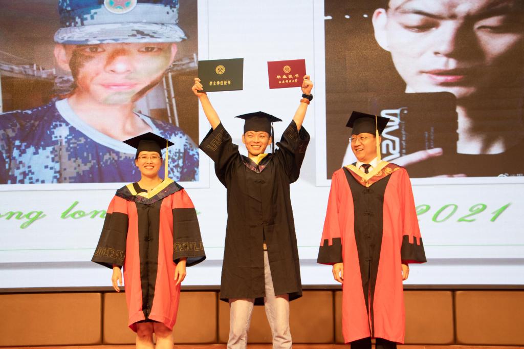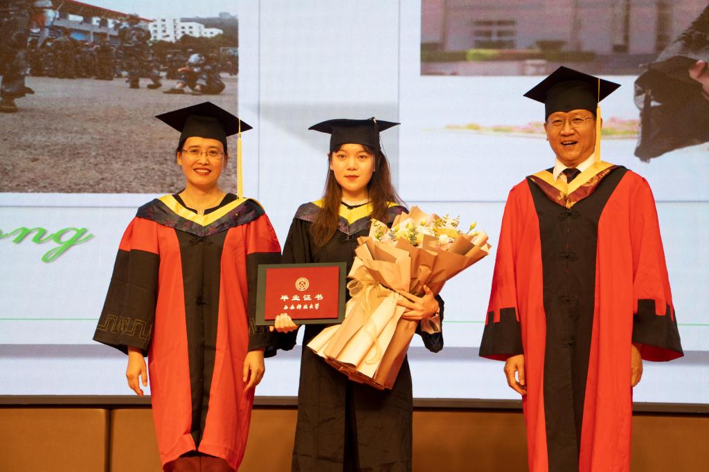 庄严的学位授予仪式开始,党委书记陈吉兰、院长柴敬用了80分钟的时间为学院全体2021届本科毕业生一一颁发了毕业证书和学位证书。正冠拨穗,流苏扶正,为每一位毕业生送上一张具有刻骨铭心的学位合照。