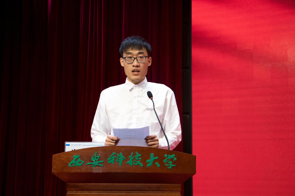 采矿工程专业1703班冯泽杰代表2021届全体毕业生郑重承诺:谨记“祖国利益高于一切”的校训,传承和发扬“能源学院,勇往直前”的精神,在未来的求学和工作中努力做到以自强为船,以奉献为帆,以奋进为浆,为能源行业和社会发展贡献青春力量。
