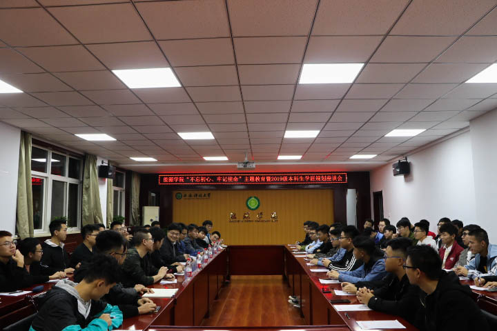 11月4日晚,能源学院院长柴敬教授在临潼校区骊山校园学院会议室主持召开“不忘初心、牢记使命”主题教育暨2019级本科生学涯规划座谈会。能源学院学工办主任、团委书记万超,博士研究生马哲,硕士研究生杨玉玉,推免研究生韩志成、张雷铭以及60名2019级本科生代表参加了座谈会。
