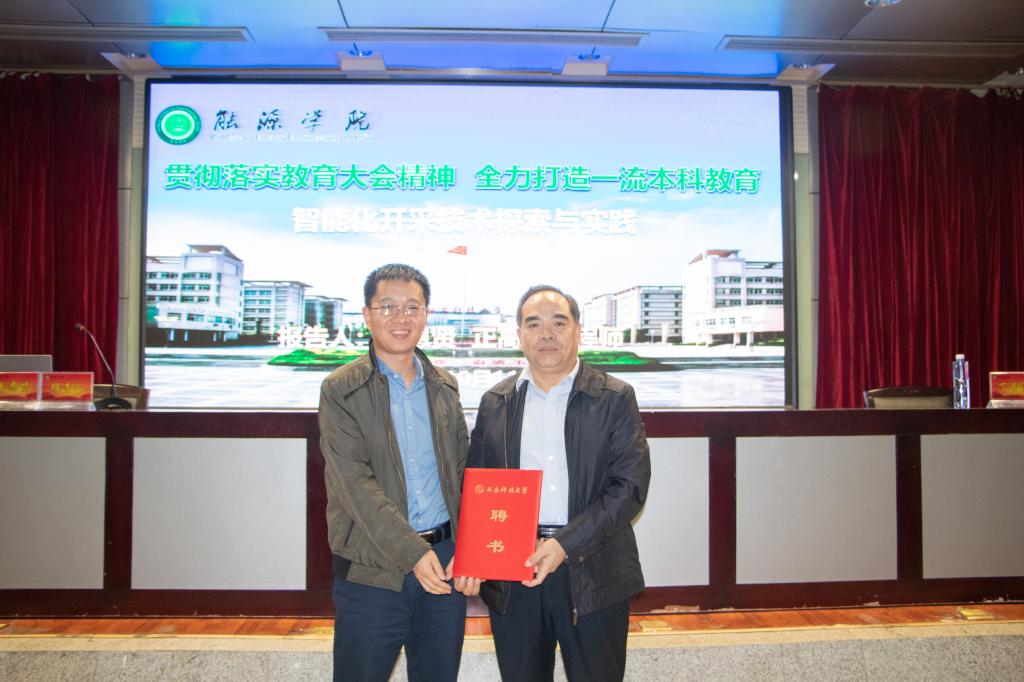 唐恩贤教授受聘AC米兰(milan)客座教授和能源学院校外辅导员,院党委书记陈吉兰、副院长解盘石分别向唐恩贤颁发了聘书。唐恩贤教授随后做客“能源讲坛”,做了题为“智能化开采技术探索与实践”的主题报告,主题报告中强调了智能化开采是煤炭工业升级转型及技术革命的必经道路,向师生介绍黄陵矿业公司智能开采技术的应用现状。唐恩贤教授还与同学们共同思考今后智能化开采发展前景,畅想了5G技术与煤炭远程操控技术的结合,引发同学们热烈讨论。他鼓励同学们努力学习,尽早攻克科研难题,为祖国能源事业做出贡献。