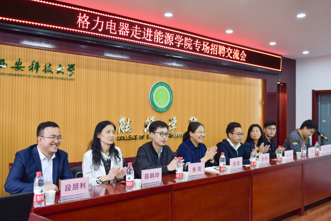 9月16日,珠海格力电器西科大校园专场招聘会在临潼校区能源学院会议室举行。珠海格力电器华中地区副总监李刚,西北分公司大项目经理朱亮、王鑫、段朋利,建筑环境与能源应用工程系党支部书记张进及专任教师陈柳、薛韩玲参加了招聘宣讲。宣讲会由院学工办主任、团委书记万超主持。