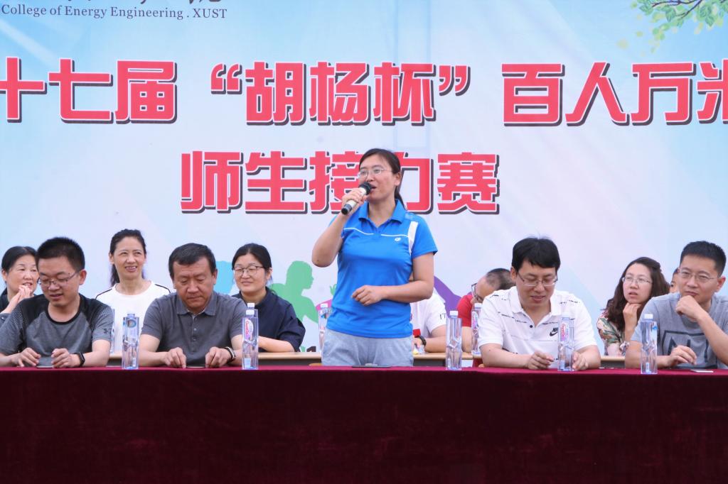 能源学院院长柴敬在闭幕式讲话中提到,通过本届百人万米师生接力赛再一次看到了能源学子永不言败,奋力拼搏,青春洋溢,勇往直前的精神风貌;看到了同学们团结一致,互帮互助,兼爱和善的集体荣誉感;看到了老师和同学们师生协作,融洽交流,互动团结的良好师生关系。希望同学们可以顽强拼搏,再接再厉,用最佳的精神状态在学习上、生活上努力上进,再创佳绩,放飞青春之我。