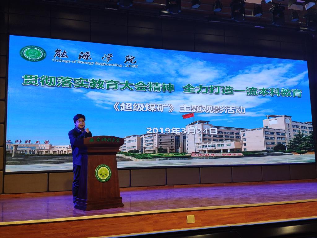 324日,能源学院在临潼校区骊山校园煤炭科技中心一楼报告厅组织学生观看央视4集系列专题片《超级煤矿》,学院全体在校本科生600余人参加活动。观影活动由学院学工办主任、团委书记万超主持。