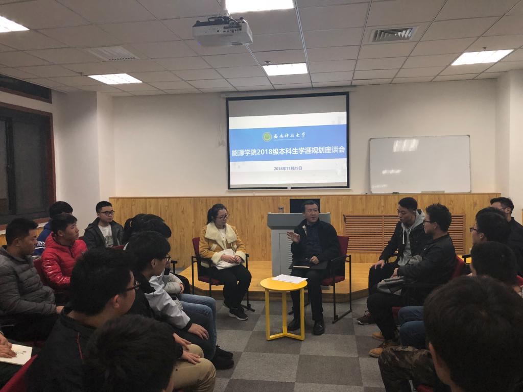 1130日,能源学院在临潼校区图书馆智慧学习空间举行本科生生涯规划座谈会,学院院长、博士生导师柴敬教授、院团委书记万超及302018级本科生代表参加了座谈。