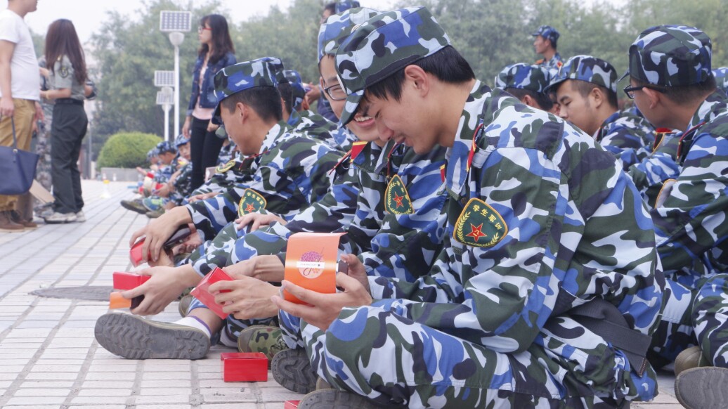 以关怀为圆心,以感动为半径,画出团圆的圆。中秋节,军训虽苦,月饼却甜。能源学院全体参训师生陪大家度过。
