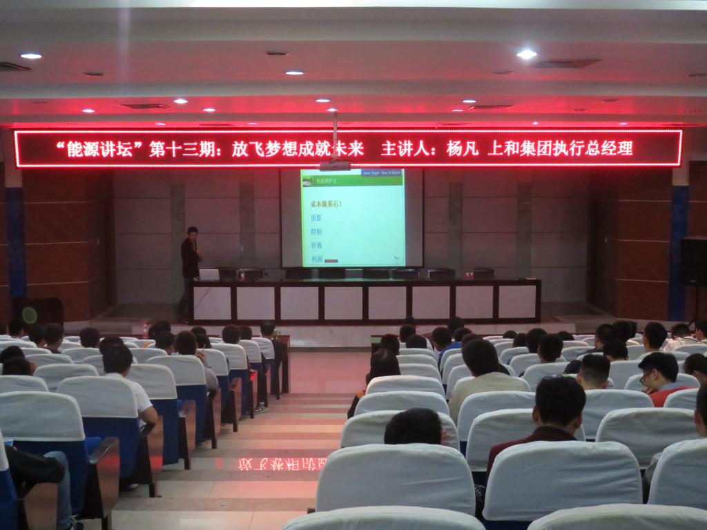 10月20日晚,我院在临潼校区图书馆报告厅举行了“能源讲坛”第十三讲,上和集团执行总经理杨凡做了题为“放飞梦想,成就未来”的创业指导讲座。我院党委副书记高朕栋、2012级、2013级、2014级学生代表聆听了讲座。
