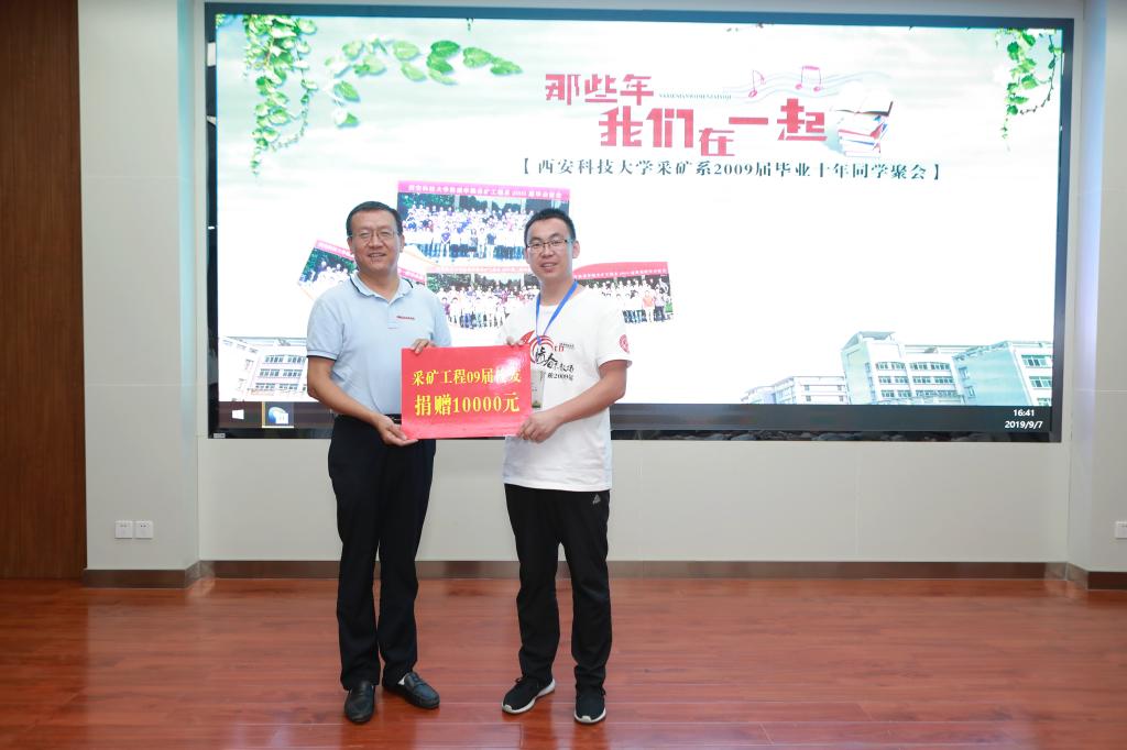 最后,为了表达对母校和老师们的感谢,同学们向参加座谈会的老师们献上了精心准备的礼物,并向能源学院“薪火相传”基金捐赠壹万元整。十年返校活动尽管匆匆,却温馨幸福,回味悠长。