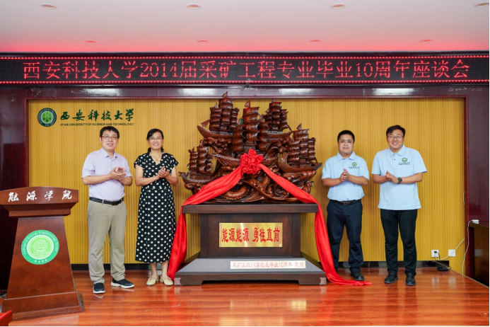 座谈会在临潼校区骊山校园学院会议室举行。参会校友一一发言,畅谈校园趣事和学校变化,汇报了自己工作经历和感悟。院党委书记陈吉兰老师欢迎远道而来的校友回家,感谢校友长期以来对母校、对能源学院的支持。院长赵兵朝老师向校友介绍了近年来学院发展、专业设置、人才培养、科学研究等各方面情况和取得的成绩。退休老教授张恩强老师、贠东风老师向校友表达了感谢,介绍了自己的退休生活,并叮嘱同学们努力工作、重视健康。时任教师索永录老师、柴敬老师、黄庆享老师、解盘石老师、丁自伟老师、高晓旭老师、曹建涛老师、张沛老师、王红伟老师回忆了当时上课和做毕业设计的情景,感谢同学们在教师节之际回校看望老师,祝福大家工作顺利,家庭幸福,期待采矿10级的毕业20年聚会。时任党委副书记高朕栋老师、辅导员戴开文老师和闵斌老师,看到大部分同学坚守在煤炭行业发光发热,看到同学们在各自奔前程的路上努力拼搏,看到大家毕业十年归来仍是少年,非常开心和激动,希望同学们无论走多远,都记得常回家看看。“欢迎”“感谢”“祝福”“10年”“20年”等高频词汇贯穿了座谈会前后,欢乐与美好的师生情谊溢满全场。