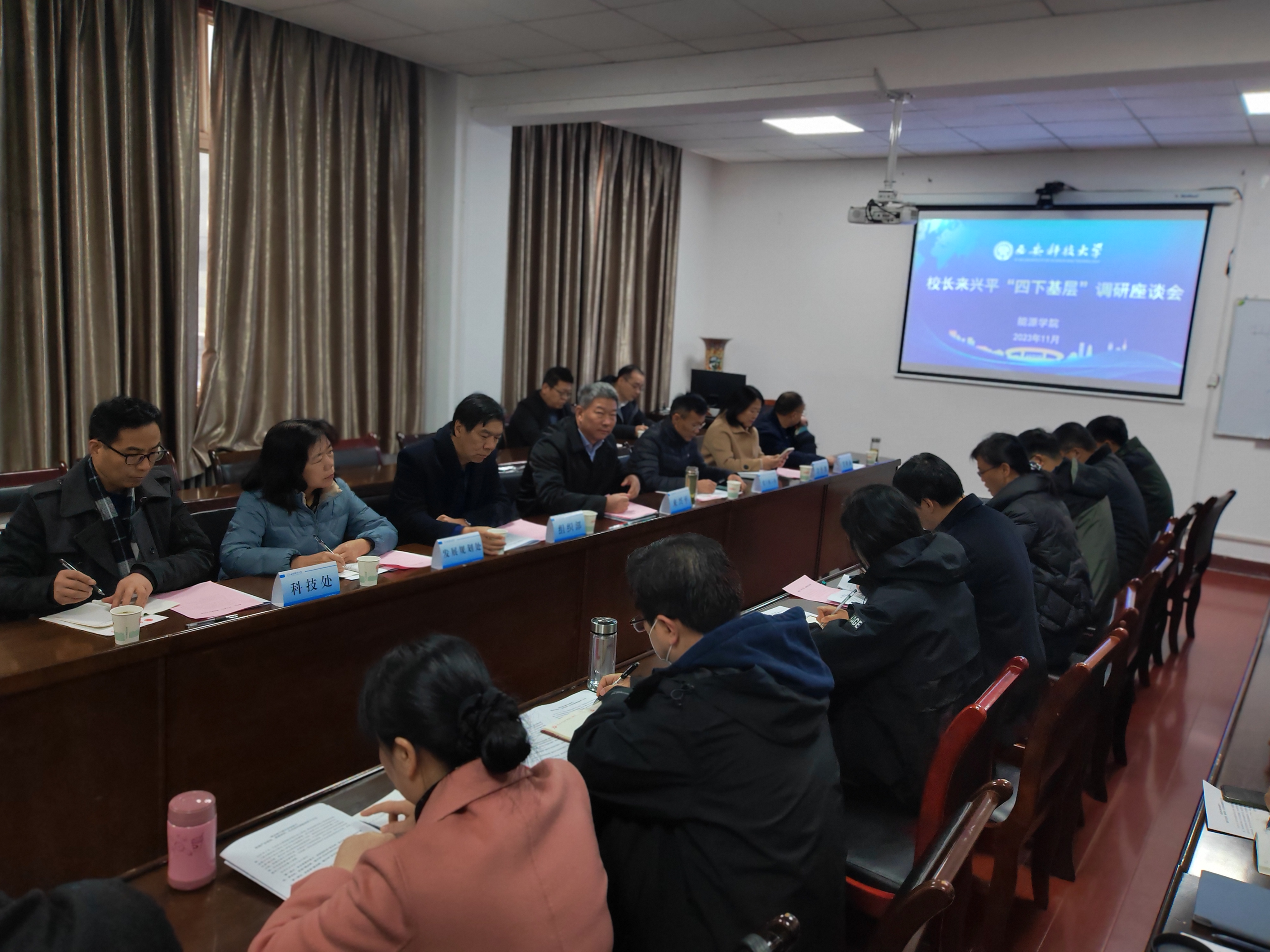 11月25日上午,校长来兴平带队深入能源学院开展“四下基层”专题调研,主持召开调研座谈会并讲话。党(校)办、组织部、宣传部、科技处、学科办、发展规划处等部门负责人陪同调研,能源学院班子成员、支部书记、系主任和实验教师、辅导员、研究生代表参加了调研座谈会。