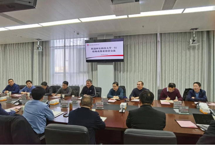 在与陕西陕煤榆北煤业有限公司座谈时,石增武董事长对母校调研组一行的到来表示欢迎,他介绍了企业发展情况,对校企人才培养、科技项目攻关、解决现场实际问题,为企业高质量发展提供了强力支持表示感谢。双方围绕智慧矿区建设、智能矿井框架重构、智能掘进、薄煤层超长工作面开采等方面进行座谈研讨。来兴平教授表示矿业工程学科与企业要进一步加强科研成果转化和产学研一体化合作,结合能源学院矿业工程学科布局,特别是在智慧矿区智能矿井、新能源科学与工程等领域加强联合攻关,以陕北煤炭“绿色、低碳、安全、智能”开发为目标,为建设榆林国家级能源革命创新示范区做出应有的贡献,也为矿业工程学科高质量发展奠定基础。