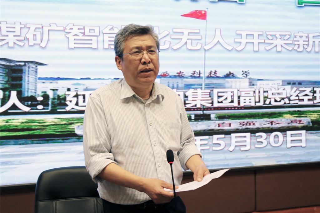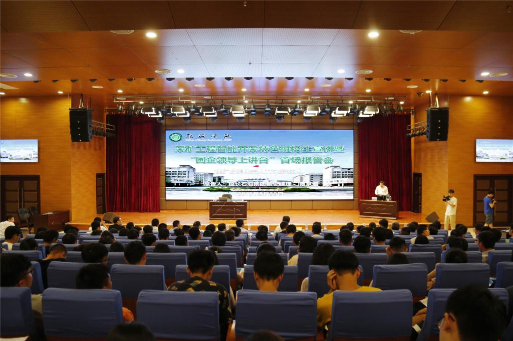 陕西延长石油集团副总经理、国家应急管理部智能化开采技术创新中心主任范京道在骊山校园煤炭科技中心一楼报告厅做了采矿工程智能开采特色班招生宣讲暨“国企领导上讲台”首场报告会。报告会前,范京道为我校图书馆捐赠100本个人专著《智能化无人综采技术》,图书馆负责人接受了捐赠,李明颁发了捐赠证书并致感谢辞,范京道做了《煤矿智能化无人开采新技术》的专题报告。同时对广大学生了提出了“家国情怀、志存高远、刻苦学习、文化修养、强身健魄”20字的殷切希望,希望大家贯彻落实习近平总书记在纪念五四运动100周年大会上的讲话精神,苦练内功,将来在改革开放和现代化建设的伟大实践中施展才华,做出一番感天动地的事业。