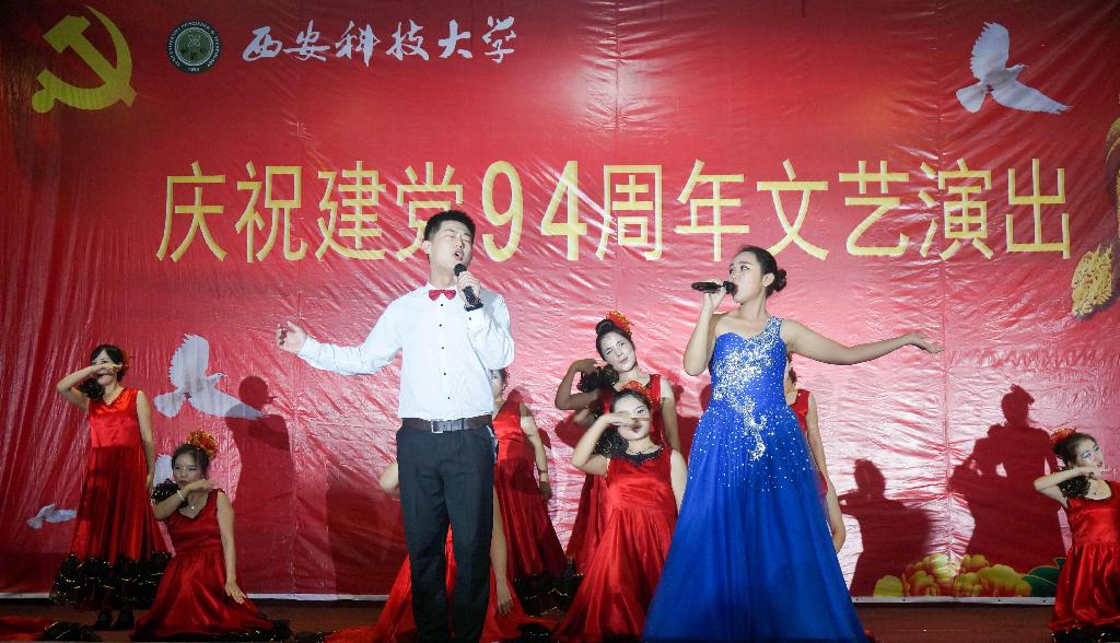 6月26日晚,庆祝建党94周年暨抗战胜利70周年文艺演出在我校临潼校区学生第二俱乐部隆重举行。