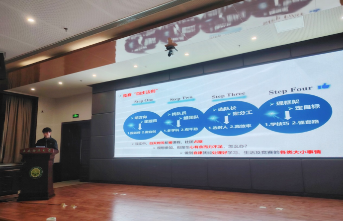 活动第二阶段,两位国家奖学金获得者——建环2002班许森蕾和采矿2102班孙嘉豪,分别以《用奋斗创造不凡》和《为梦想不止步》为题开启了能源学院“榴苑追梦”首场报告。两位同学分享了自己的成长经历、学习经验、参与实践和服务班级同学情况,特别详细介绍了自己参加科创竞赛全过程、注意要点和心得体会。他们真诚又风趣的交流博得现场阵阵掌声。