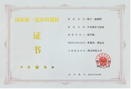 在历经漫长的时间洗礼后,“开采损害与防治”课程改革创新成绩斐然。赵老师所带班级成绩优良率大幅提升,学生在毕业设计中,能够围绕课程内容开展专题研究,同时,学生创新能力提升显著,学生参与全国采矿工程专业实践作品大赛等第二课堂竞赛的热情被进一步激发,作品质量和获奖等级不断提升。此外,扎根西部煤矿企业的毕业生不断增多,并涌现出一批“全国煤矿建功立业优秀大学毕业生”等先进典型。就课程自身而言,先后获批国家级一流课程1门,省级虚拟仿真一流课程1门。赵老师本人也荣获全国煤炭教学名师、全国煤炭教育先进个人和陕西省教学名师等荣誉称号,并获得陕西省本科高校教师教学创新大赛一等奖1项,全国高校教师教学创新大赛二等奖1项。
