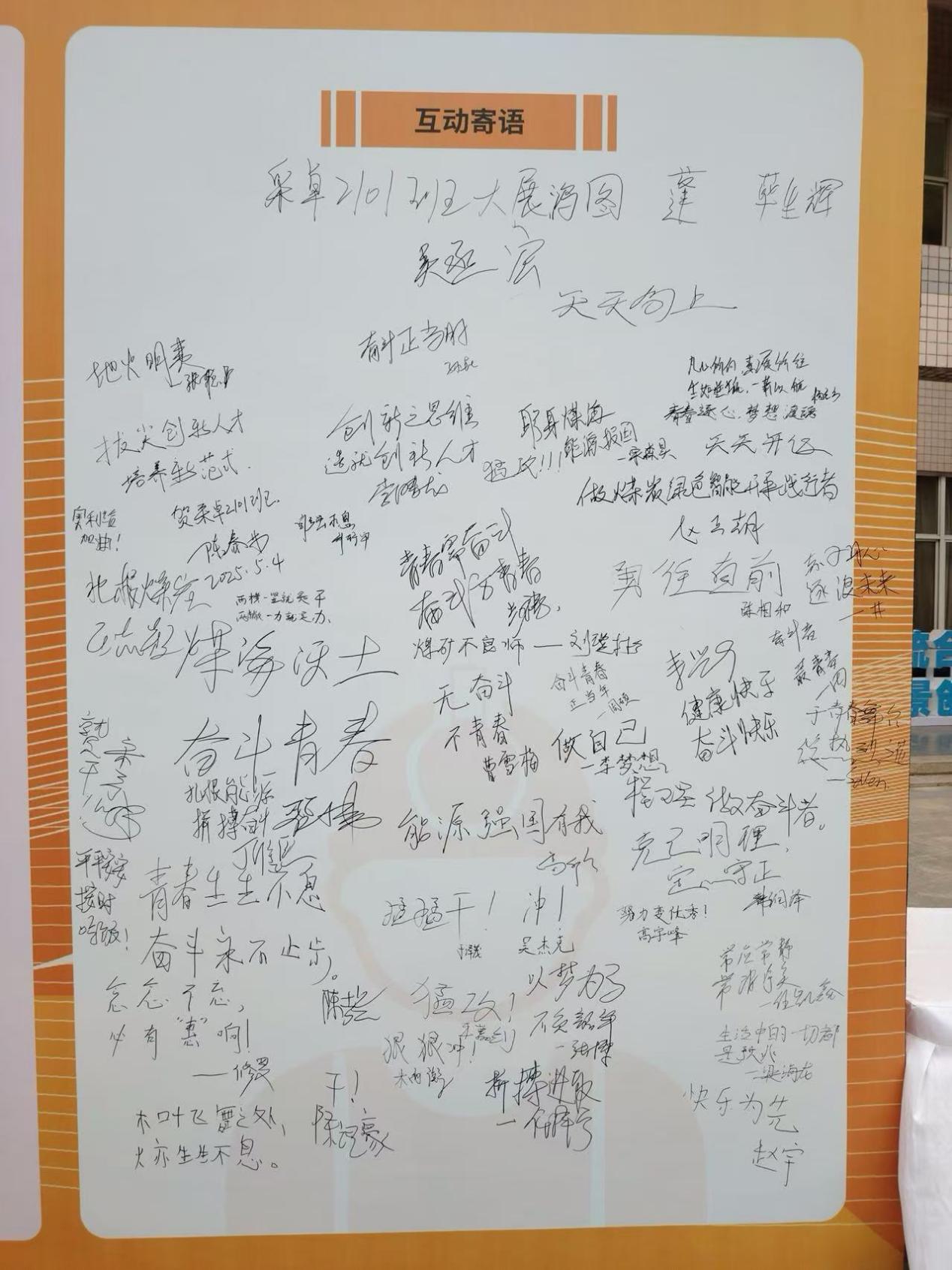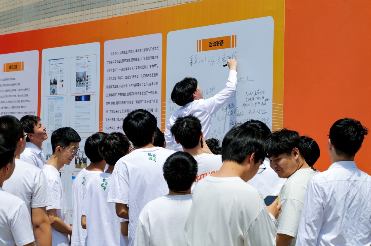 随后,与会人员参观了展览,师生们在留言板上写下了真诚质朴的寄语,为采卓2101班的同学们送上祝福,也为自己的青春许下奋斗誓言。