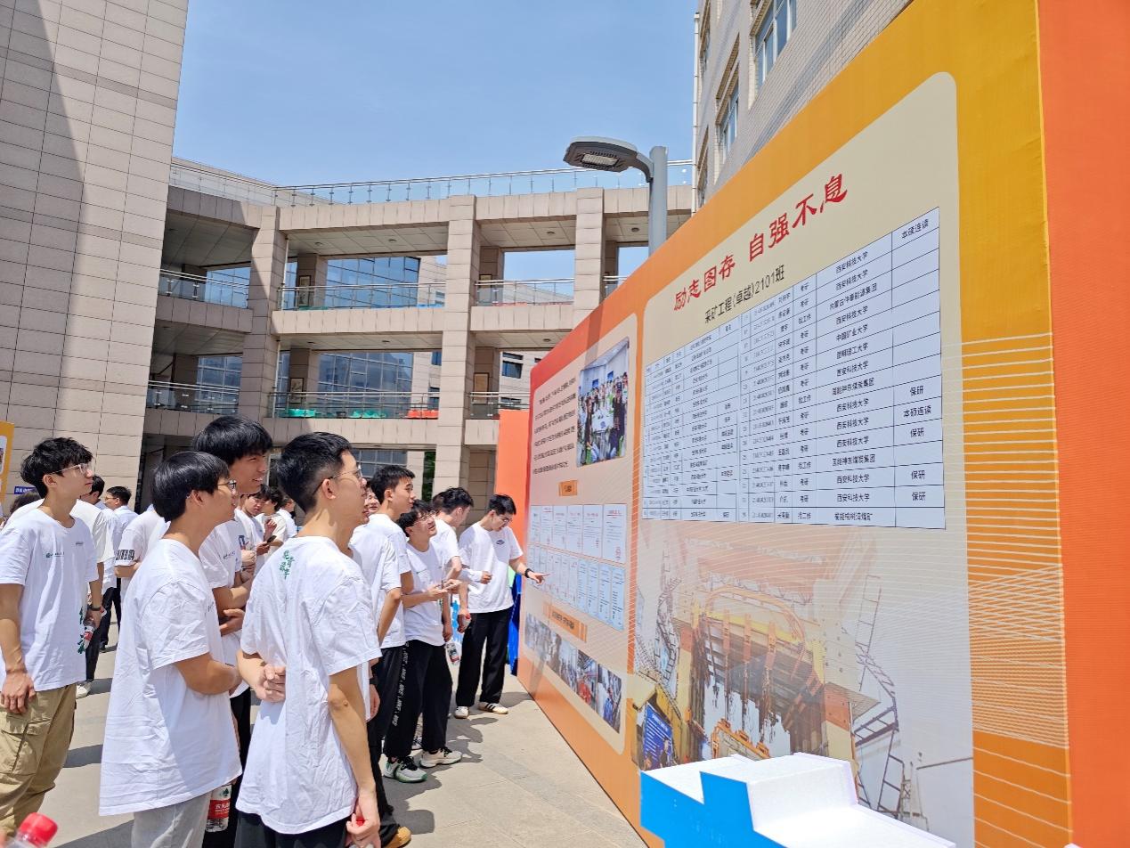 五四青年节当天,我院在临潼校区骊山校园举办了“青春之问,奋斗作答—采卓2101班成长之路”场景创新主题展览。班主任、校党委书记来兴平,校党委副书记陈春林,副校长程卫星,宣传部、学工部、校团委、教务处、科技处、未来技术学院等相关单位负责人和全国高校黄大年式教师团队代表应邀参加了活动,采矿工程(卓越)2101班、采矿工程2024级创新班和采矿工程(卓越)2402班全体学生及马克思主义学院学生代表参加了活动。活动由我院党委书记陈吉兰主持。
