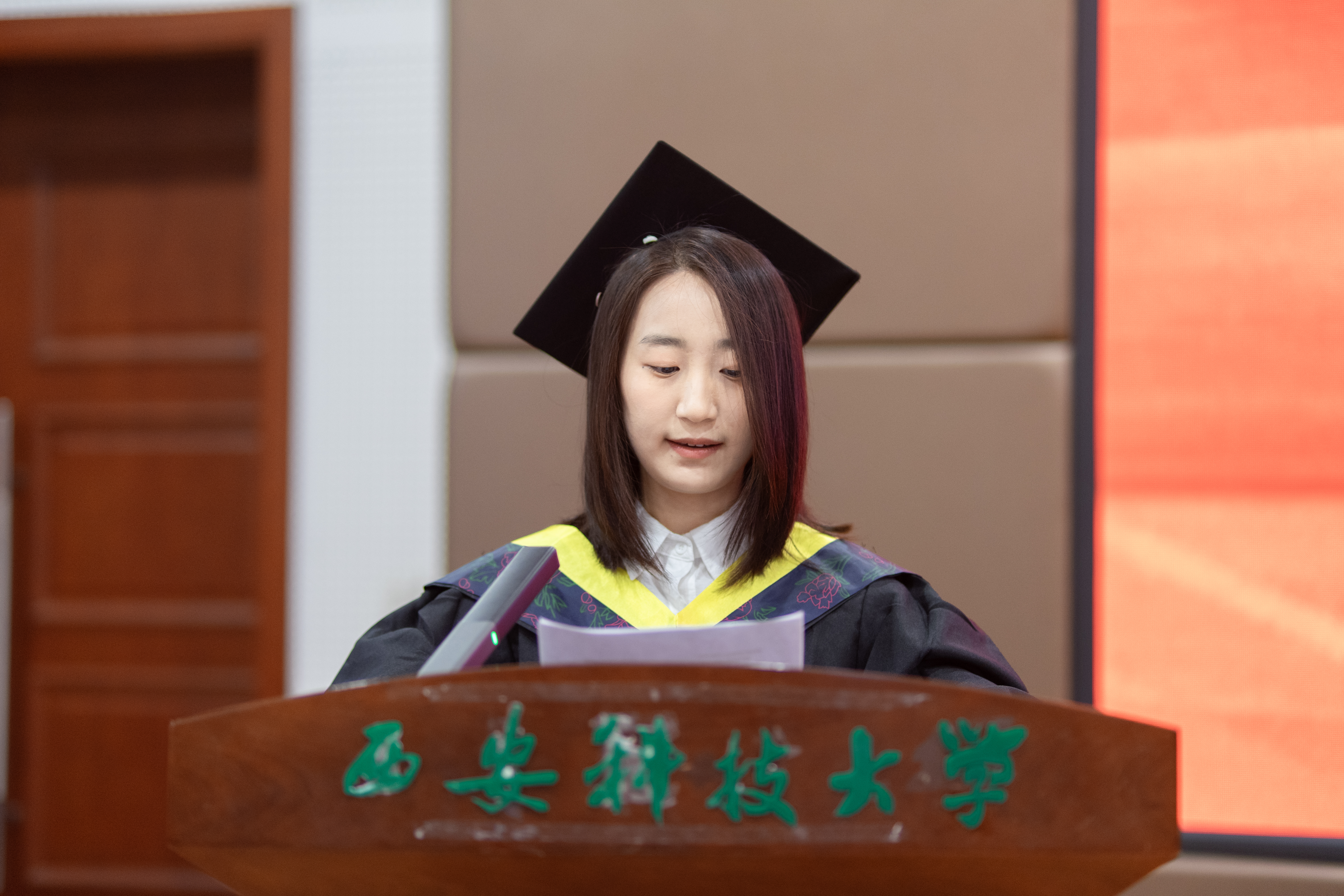 教师代表郎丁以“大学最后一课”为题发表致辞,他叮嘱毕业生:“做一个有条有理的人,不糊涂,不慌乱,少出错;做一个不疾不徐的人,定位清晰,目标明确,善作善成,进退有据;做一个刚柔相济的人,守初心,讲原则,知变通,会借力。”