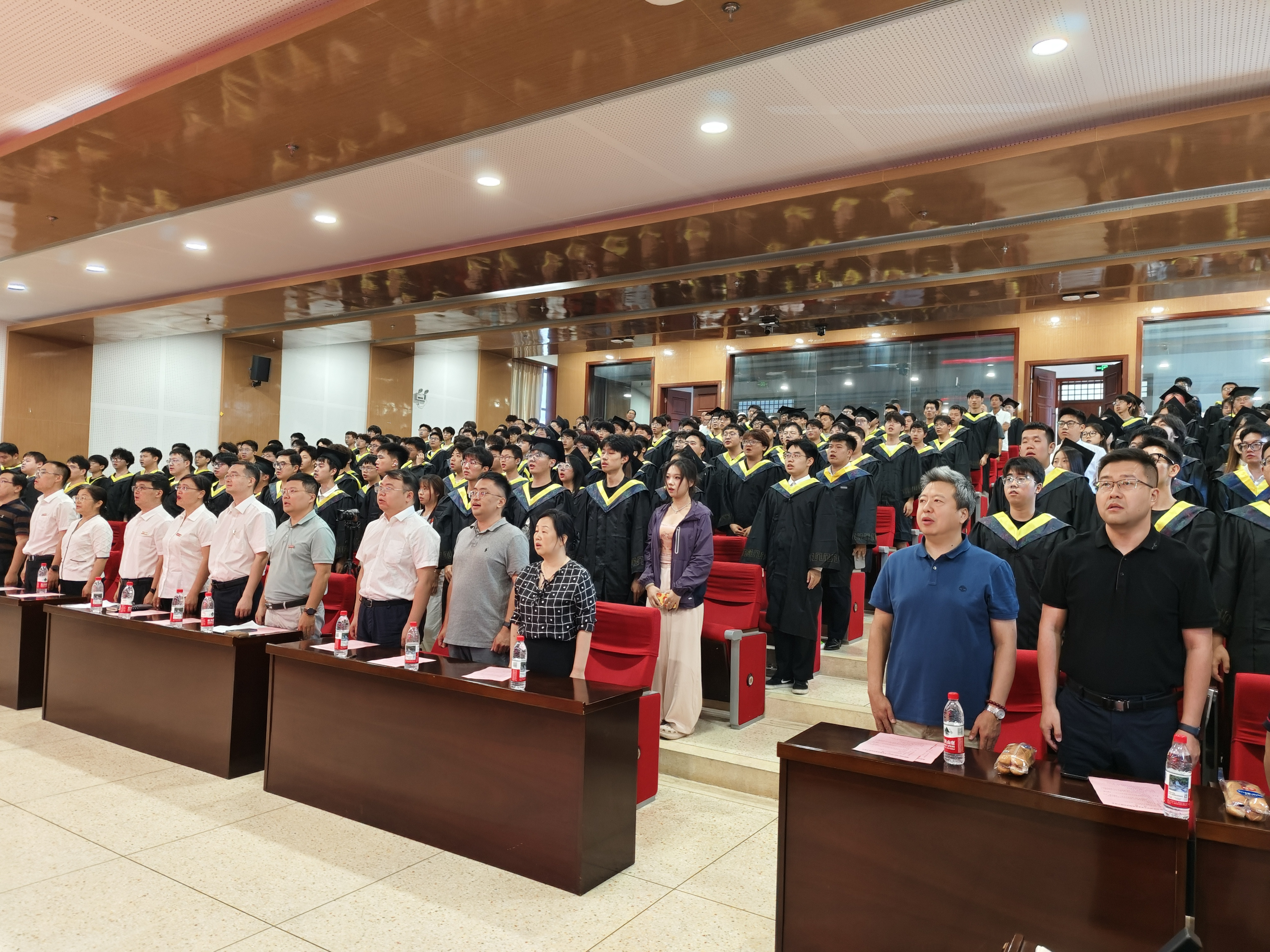 当雄浑激昂的国歌声在报告厅内响起,全体人员肃立奏唱,毕业典礼正式拉开序幕。这振奋人心的旋律,不仅是对过往学业的致敬,更预示着毕业生们即将开启的崭新人生篇章。