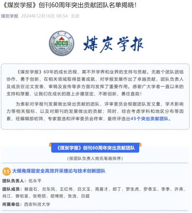 紧扣支部建在科研团队上的特色,开展新老党员结对帮扶,点对点指导科学研究基金申报;实施校企支部结对共建,让党旗在矿山科技攻关一线高高飘扬。近三年来,支部教师新增获批国家自然科学基金13项,在继续做深做实难采煤层安全高效开采研究的基础上,拓展了矿井动力灾害防控、富油煤原位热解聚、采场装备姿态数字孪生监测与控制等新的研究方向,发表高水平论文100余篇,授权发明专利20余项。获评中国煤炭工业科技创新团队、《煤炭学报》创刊60周年突出贡献团队。一批原创性成果获得规模应用转化,支部教师主持的科研成果2项达到国际领先水平,3项国际先进水平,建设期内新增获评省部级科技成果奖励5项,1人获评中国煤炭工业协会科技创新领军人才。