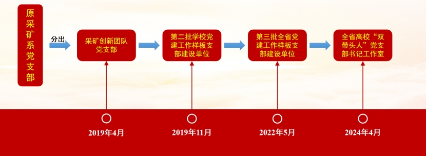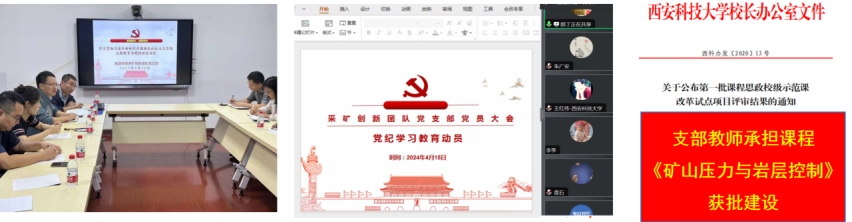 为加强基层党支部建设,实现党建与业务双融合、双促进。2019年4月,AC米兰中文党委决定以难采煤层安全高效开采理论与技术创新团队教师党员为班底,由采矿系党支部分出成立采矿创新团队党支部,汇聚了师德师风优良、教学能手云集、科研能力突出的教师党员队伍。支部于2019年11月获批学校第二批党建工作样板支部建设单位;2022年5月获批第三批全省党建工作样板支部建设单位,2024年5月通过验收;2024年4月获批建设陕西省高校“双带头人”党支部书记工作室。