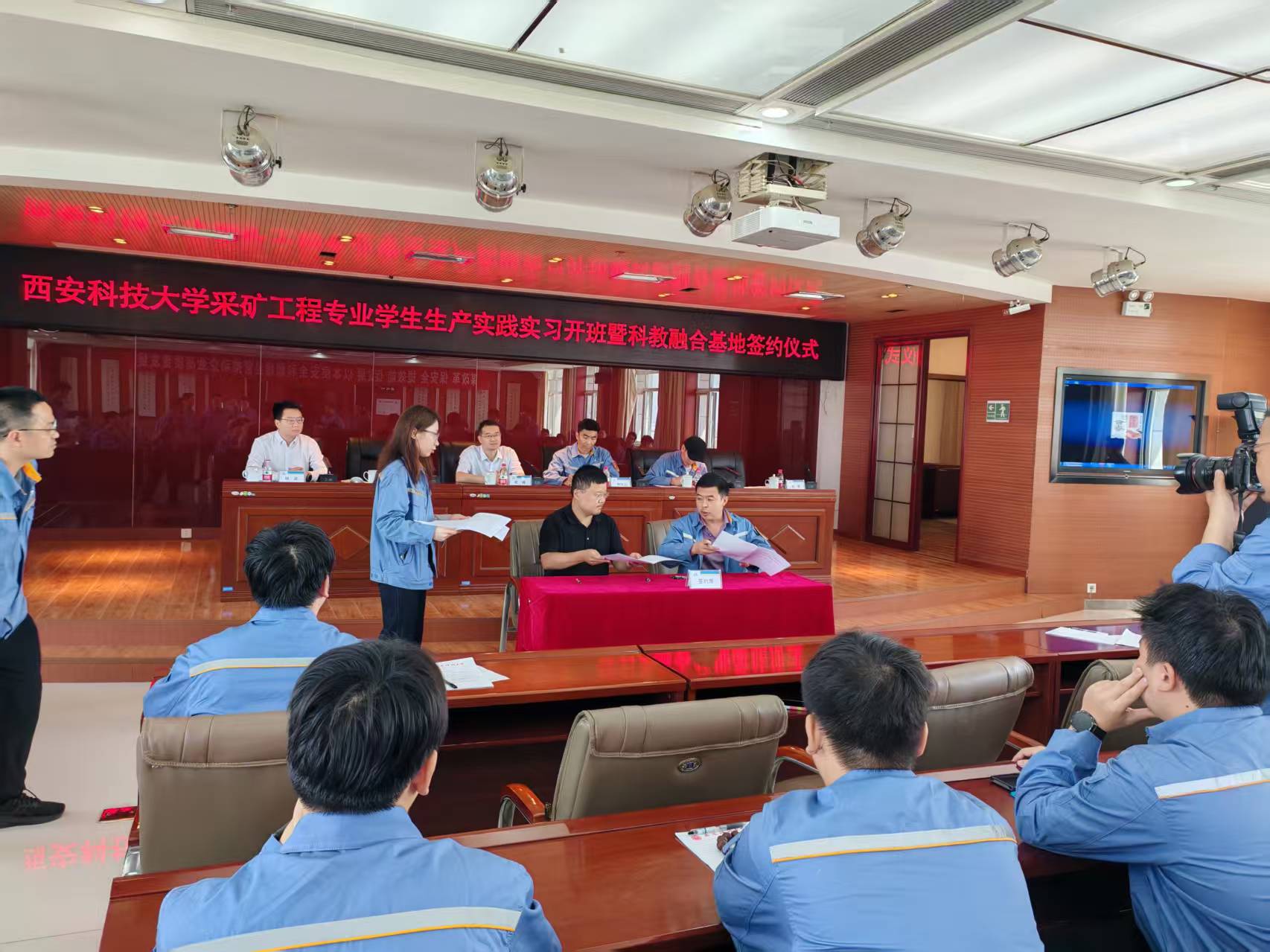 为促进产教、科教深度融合,提升本科生实践创新及研究生培养质量,6月30日上午,我院与中铝宁夏能源银星煤业有限公司在银星煤业公司办公楼6楼会议室共同举行采矿工程专业2022级生产实习开班仪式暨科教融合等基地签约挂牌仪式。银星煤业公司党委副书记、纪委书记、工会主席韩宝云、安全总监马晓军、副总经理魏景与院长崔峰、副院长丁自伟教授、学院挂职银川市发展和改革局副局长杨涛及实习带队教师和采矿工程(卓越)2201班和采矿工程2204班全体学生共同见证了我院又一实践创新及科教融合基地的落实。仪式由安全总监马晓军校友主持。