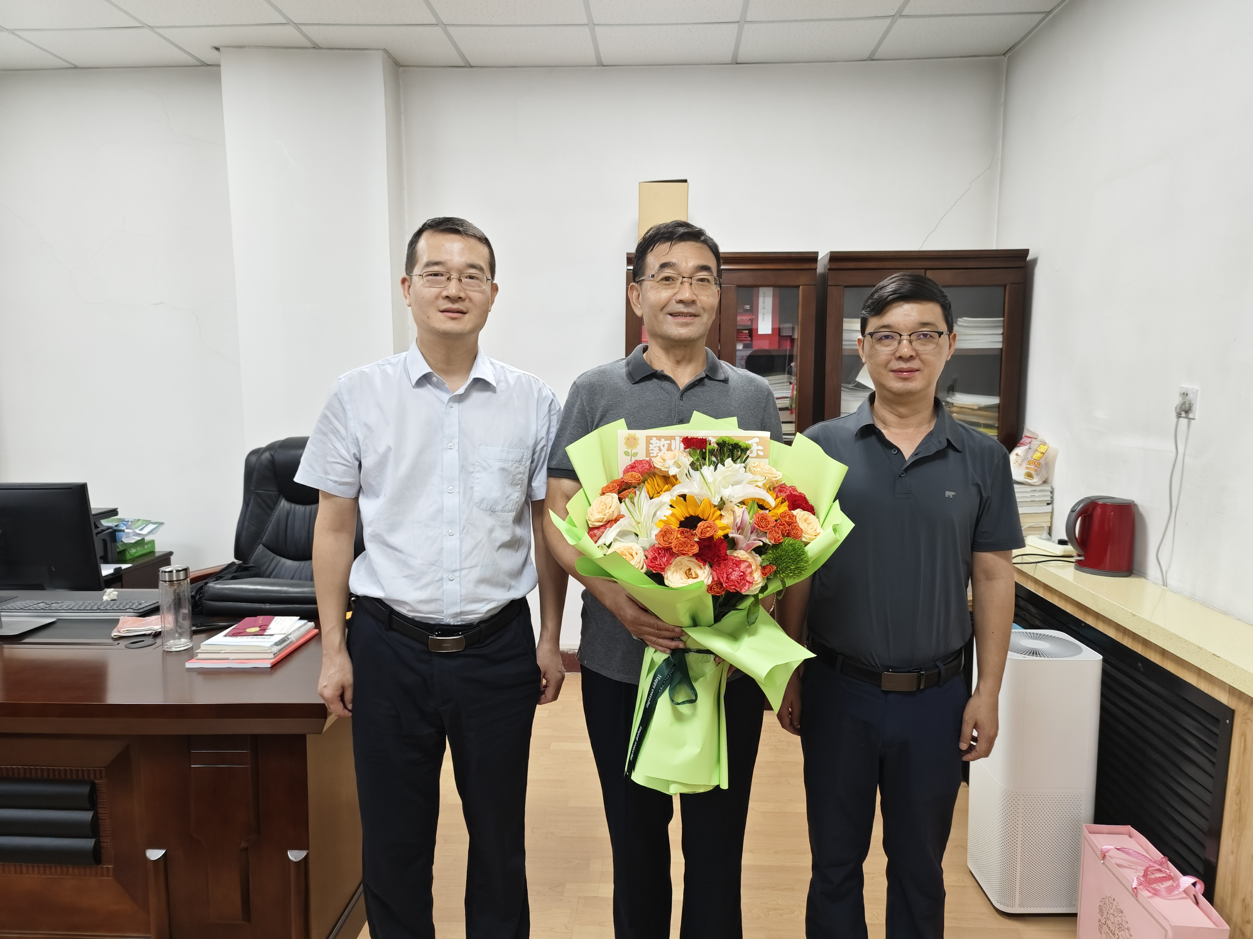 在慰问全国高校黄大年式教师团队成员周斌教授时,学院党委书记陈吉兰、院长崔峰代表学院送上节日祝福,高度肯定他在团队申报与建设过程中的关键作用,并简要介绍学院近期发展态势。双方共同回顾学院发展历程,周斌教授对学院近年来的工作成效给予高度评价,同时围绕学科建设、团队发展等方面提出宝贵意见与建议。