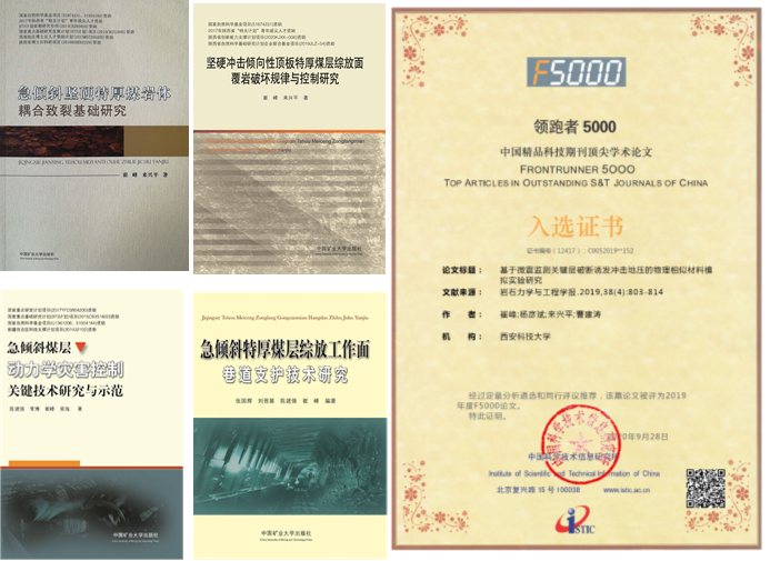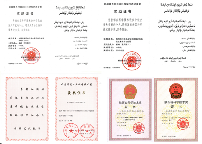 研究成果获首批陕西省博士后科研成果奖励(全省12人),科研项目“新疆乌鲁木齐矿区巨厚煤层安全开采关键技术研究及应用”、“急倾斜煤层动力学灾害控制关键技术研究与示范”等获得省部级科技进步一等奖4项、二等奖3项。指导学生获得全国高等学校采矿工程专业学生实践作品大赛一等奖1项、二等奖/三等奖各3项,指导学生完成的创新训练项目圆满结题并入选陕西省大学生创新创业训练计划项目。